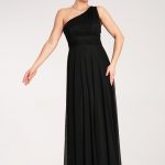 Elegancka sukienka maxi wykonana z lekkiego, zwiewnego materiału. Asymetryczny fason z jednym szerokim ramiączkiem oraz marszczeniami w talii.