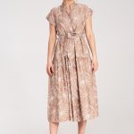 Sukienka maxi bez rękawów z kopertowym dekoltem z przodu i głębokim wycięciem na plecach. Góra delikatnie marszczona, z szerokim pasem pod biustem. Tył wiązany w kokardę.