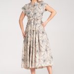 Sukienka maxi bez rękawów z kopertowym dekoltem z przodu i głębokim wycięciem na plecach. Góra delikatnie marszczona, z szerokim pasem pod biustem. Tył wiązany w kokardę.