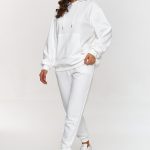 Swobodna dresowa sukienka oversize, która sprawdzi się w weekendowe popołudnie oraz przedłużający się dzień w pracy. To taka sukienka, którą możesz nosić na wiele sposobów i za każdym razem będziesz wyglądać zupełnie inaczej. Sukienka jest prosta, dlatego przyjmuje wiele ciekawych elementów ozdobnych. Posiada geometryczny fason, z tyłu ma lekkie rozcięcie, ułatwiające użytkowanie. Na jednym z rękawów obecna jest ozdobna aplikacja. Dekolt w serek sprawia, że sylwetka nie wygląda w sukience ciężko.