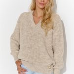 Dzianinowa sukienka mini, którą możesz nosić swobodnie lub spiąć ją paskiem. Prosta forma zapewnia dowolność w kwestii stylizacji. Dzięki długości mini, sukienka podkreśla zgrabne nogi. Z kolei okrągły dekolt został zakończony skórzaną lamówką, która występuje również na klapach przednich kieszeni oraz pasku. Casualowa dzianinowa kreacja posiada złote elementy ozdobne, takie jak: guziki i biżuteryjna klamra. Rękaw 3/4 sprawia, że to sukienka, którą możesz założyć do pracy. Nawet, jeśli kolega z biurka obok lubi podkręcić klimatyzację. Sukienka sprawdzi się w wielu ciekawych stylizacjach: załóż do niej mocne botki, długie kozaki lub sportowe sneakersy i przekonaj się sama. Model występuje w kolorze czarnym.