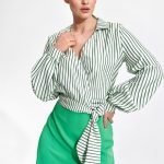 Sukienka midi z dekoltem w serek, z krótkim rękawem, lekko rozkloszowana do dołu, z falbaną.