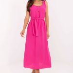 Letnia muślinowa sukienka o rozkloszowanym fasonie to lekka i przewiewna propozycja na codzienne stylizacje. Wykonana z miękkiej, oddychającej bawełny, zapewnia komfort noszenia w ciepłe dni. Gładka tkanina oraz prosty krój sprawiają, że sukienka prezentuje się kobieco i naturalnie. Model sięga za kolano i posiada okrągły dekolt, który delikatnie podkreśla linię szyi. Ramiączka są wiązane, co pozwala na indywidualne dopasowanie i dodaje uroku całej stylizacji. Sukienka nie posiada zapięcia, jest zakładana przez głowę, co podkreśla jej swobodny, casualowy charakter. Idealna na spacery, zakupy czy letnie spotkania.