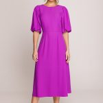 Elegancka i kobieca sukienka midi o dopasowanym kroju, który pięknie podkreśla sylwetkę. Góra z dekoltem w kształcie litery V, częściowo na podszewce, dodaje subtelnej lekkości, a rękawy o długości 3/4 nadają klasycznego charakteru. Dół z motywem kopertowym zapewnia swobodę ruchu i wysmukla sylwetkę. Z tyłu w talii wszyta została elastyczna guma, która dopasowuje się do figury, a dodatkowy wiązany pasek pozwala na podkreślenie talii według własnych preferencji. Sukienka zapinana na kryty zamek z boku, co zapewnia estetyczne wykończenie. Model zaprojektowany i uszyty w Polsce, z dbałością o każdy detal. Idealna na wyjątkowe okazje i eleganckie wyjścia.