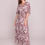 Odkryj wyjątkową elegancję i kobiecy fason w tej sukience midi, zaprojektowanej i uszytej z dbałością o detale w Polsce. To idealny wybór na specjalne okazje, łączący klasykę z nowoczesnością. Sukienka wykonana jest z gładkiej tkaniny z subtelnym połyskiem, która pięknie układa się na sylwetce i przyciąga wzrok. Głęboki dekolt w kształcie litery V z klasycznym kołnierzem nadaje jej wyrafinowanego charakteru i zmysłowo eksponuje szyję. Brak rękawów sprawia, że kreacja jest lekka i idealna na ciepłe dni. Fason sukienki to dopasowana góra, która idealnie modeluje biust i talię, przechodząc w rozkloszowany dół. To połączenie tworzy kształt klepsydry, podkreślając kobiece kształty i zapewniając swobodę ruchów. Długość midi, sięgająca za kolano, dodaje elegancji i uniwersalności. Sukienka zapinana jest na kryty zamek na boku, co ułatwia zakładanie i sprawia, że zapięcie jest niewidoczne. Dodatkowo, góra jest rozpinana na przodzie, co zwiększa komfort noszenia. Funkcjonalne boczne kieszenie to dyskretny, a zarazem praktyczny element. Brak podszewki zapewnia lekkość i przewiewność materiału. Całość została zaprojektowana i uszyta w Polsce, co gwarantuje wysoką jakość wykonania. Ta sukienka to doskonała propozycja na wieczorne wyjścia, uroczystości rodzinne czy eleganckie kolacje, gdzie chcesz wyglądać zjawiskowo i czuć się komfortowo.