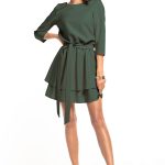Sukienka rozkloszowana z dekoltem w serek i kieszeniami.