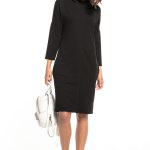 Prosta sukienka z dekoltem w serek, wykończona u dołu koronką.