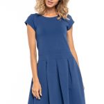 Elegancka sukienka mini z podwójną spódniczką, krótkim rękawem oraz dekoltem w szpic z przodu i z tyłu, do sukienki dołączony pasek z ozdobną klamrą.