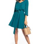 Luźna elegancka sukienka midi wykonana z dzianiny bawełnianej. Góra sukienki w stylu kimono. Sukienka posiada pasek do wiązania, który jest przyszyty po bokach.
