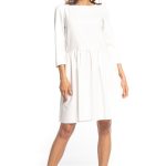 Luźna elegancka sukienka midi wykonana z dzianiny bawełnianej. Góra sukienki w stylu kimono. Sukienka posiada pasek do wiązania, który jest przyszyty po bokach.