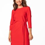 Dzianinowa sukienka mini z dekoltem w łódkę i długimi bufiastymi rękawami wykończonymi podwójnym mankietem.