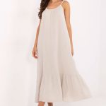 Elegancka i stylowa sukienka przed kolano stworzona z myślą o wyjątkowych okazjach. Wykonana z gładkiego materiału połączenia poliestru i wiskozy, pięknie się układa i zapewnia komfort noszenia. Sukienka posiada delikatną podszewkę, która dodaje jej klasy i sprawia, że całość wygląda bardzo estetycznie. Model na cienkich ramiączkach z prostokątnym dekoltem subtelnie eksponuje ramiona i dekolt. Falbany umieszczone na sukience nadają jej lekkości, nowoczesnego charakteru i kobiecego wdzięku. Nietuzinkowy fason przyciąga spojrzenia, czyniąc tę sukienkę doskonałym wyborem na imprezy, uroczystości czy wieczorne wyjścia. To połączenie elegancji i świeżości w jednej stylizacji idealne dla kobiet, które lubią wyróżniać się z klasą.