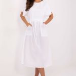 Długa, letnia sukienka o rozkloszowanym fasonie to idealna propozycja na codzienne, ciepłe dni. Wykonana z naturalnej bawełny, zapewnia przewiewność i komfort noszenia nawet w największe upały. Model na szerokich ramiączkach z dekoltem w serek subtelnie podkreśla górną część sylwetki, a luźno opadający dół zakończony falbaną dodaje lekkości i kobiecego uroku. Sukienka nie posiada zapięcia, co ułatwia jej zakładanie i gwarantuje wygodę przez cały dzień. Gładki wzór sprawia, że jest uniwersalna i łatwa do stylizowania, a praktyczne kieszenie w szwach bocznych dodają funkcjonalności. To must-have w letniej garderobie, idealna na spacery, zakupy czy spotkania na świeżym powietrzu.