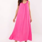 Sukienka o prostym kroju z dekoltem w serek, bez rękawków. Po bokach praktyczne rozcięcia.