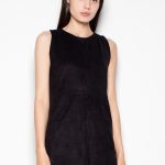 Sukienka wykonana z zamszowej tkaniny. Sukienka na szerokich ramiączkach, charakteryzują ją efektowne wycięcia na udach. Idealna na specjalne okazje.