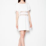 Delikatna rozkloszowana sukienka, z ozdobnymi przeszyciami na przodzie. Odcinana w pasie, rozkloszowany dół. Zapinana z tyłu na zamek.