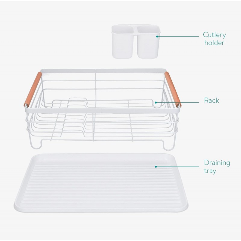 To niezbędny gadżet w każdym domu. Koniec z bałaganem! Wyjmowana tacka ułatwi wylewanie wody oraz jej czyszczenie. Suszarka posiada uniwersalny kolor, dzięki czemu dopasuje się do każdego wystroju Twojej kuchni.