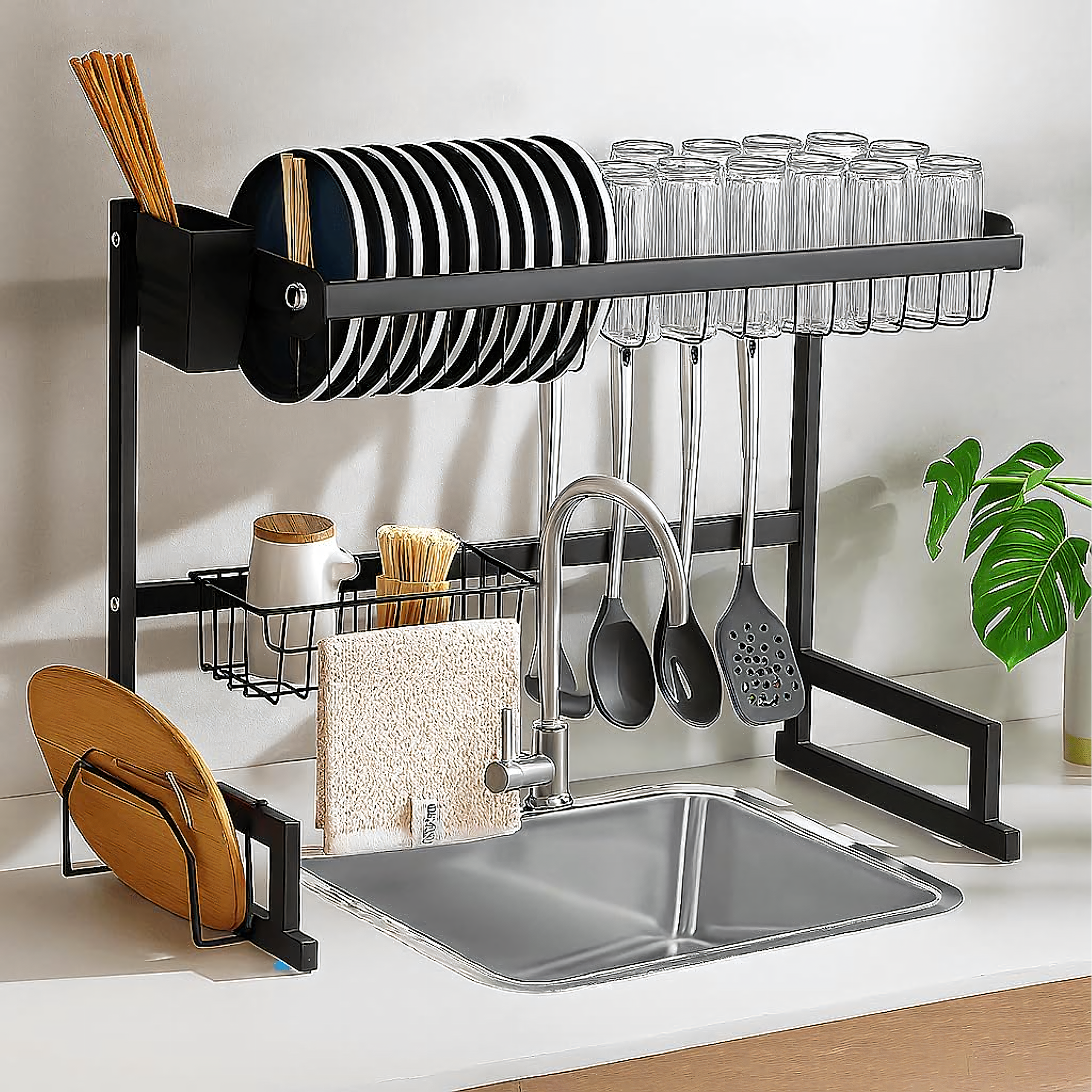 Dwupoziomowa suszarka na naczynia z uchwytem na deskę i akcesoria to idealne rozwiązanie do każdej kuchni. Dzięki stalowej konstrukcji malowanej proszkowo jest stabilna, trwała i estetyczna. Pojemność, modułowe uchwyty i przyssawki zapewniają wygodę oraz bezpieczeństwo użytkowania.