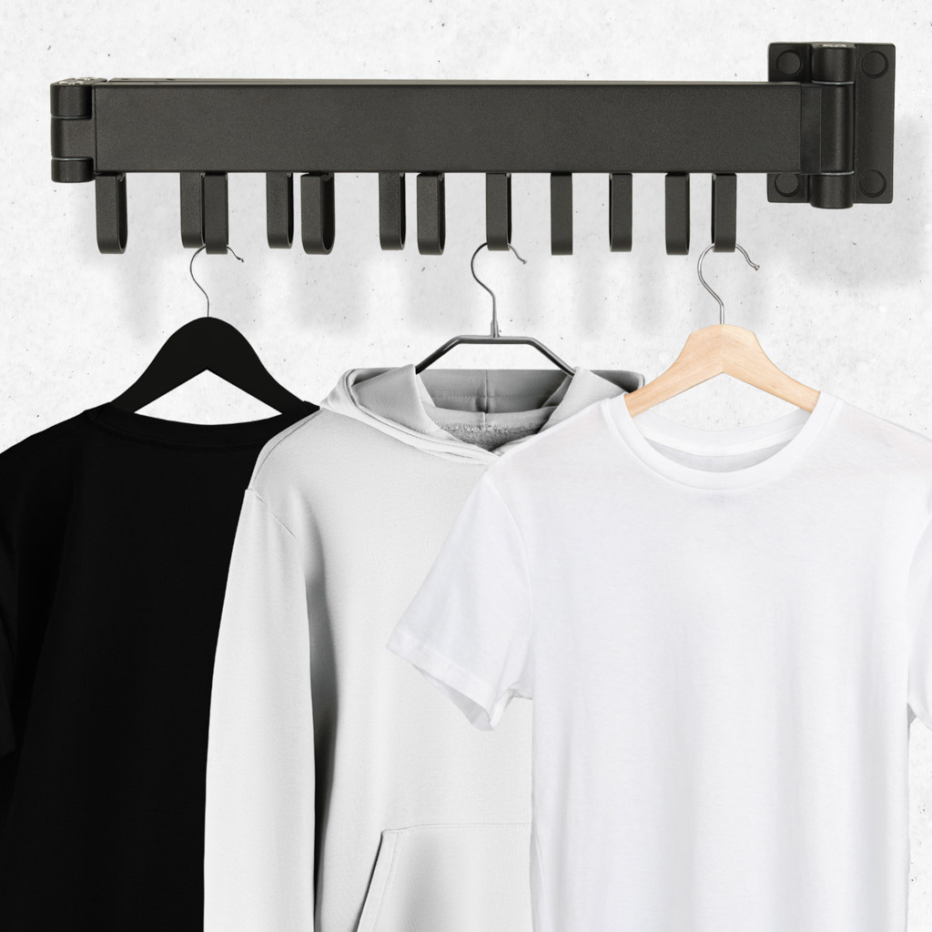 Suszarka na pranie wieszak ścienny naścienny składany teleskopowy czarny 18 haczyków 123cm