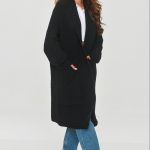 Długi kardigan damski o kroju oversize to idealna propozycja dla kobiet ceniących wygodę. Sweter sięga poniżej kolan, co nadaje mu nieco eleganckiego charakteru. Kardigan ma szerokie, długie rękawy zakończone ściągaczami, które pozwalają na regulację ich długości. Materiał przyjemny, z wyraźnym prążkowanym splotem, co podkreśla jego miękkość i ciepło. Sweter nie posiada zapięcia, co uwydatnia jego swobodę, a także szerokie kieszenie po bokach, które są praktyczne i stylowe. Taki kardigan idealnie nadaje się na chłodniejsze dni i stanowi doskonałą bazę na komfortowy i stylowy look, zarówno do pracy jak i na wyjście z przyjaciółmi.