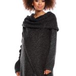 Narzutka ciążowa z szerokim, luźnym golfem o asymetrycznym, zakładanym przodzie. Elegancka i niepowtarzalna propozycja dla przyszłych mam ceniących sobie wygodę, ciepło i niebanalny wygląd. Sweter można nosić samodzielnie lub jako dodatkowe okrycie. Narzutka wykonana z miękkiej i puchatej przędzy, wkładana przez głowę.