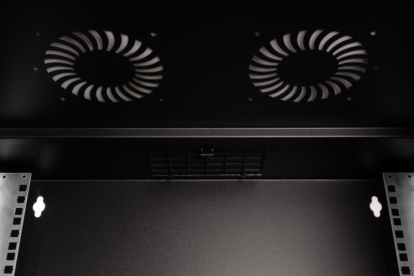 Szafa sieciowa wisząca 19″ 12U, SOHO PRO 595 x 540 x 400 mm, drzwi szyba, czarny, niezłożona, 60kg