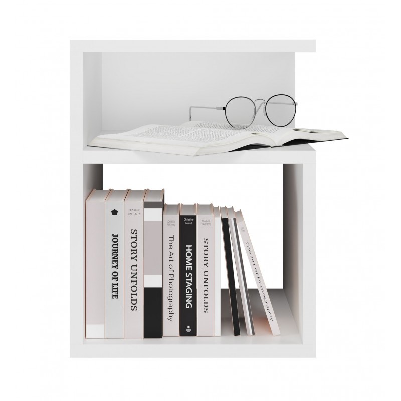 Zdjęcia zestawów przedstawiają przykładową aranżację z innymi meblami z kolekcji. Pozostałe bryły są dostępne w osobnej sprzedaży., Meble do samodzielnego montażu, Gładkie boki bez zaślepek i widocznych otworów, Powierzchnię mebla czyścić przy pomocy miękkiej szmatki. Unikać stosowania silnie działających środków chemicznych, Obrzeża – wykończone tworzywem ABS (charakteryzującym się dużą wytrzymałością mechaniczną i chemiczną), Płyta wiórowa laminowana wyróżnia się odpornością na naprężenia mechaniczne i ekstremalne temperatury