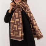 Ażurowy długi szalik z ozdobnymi pomponami, idealna propozycja na zimę.