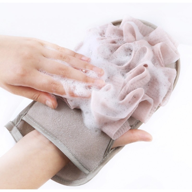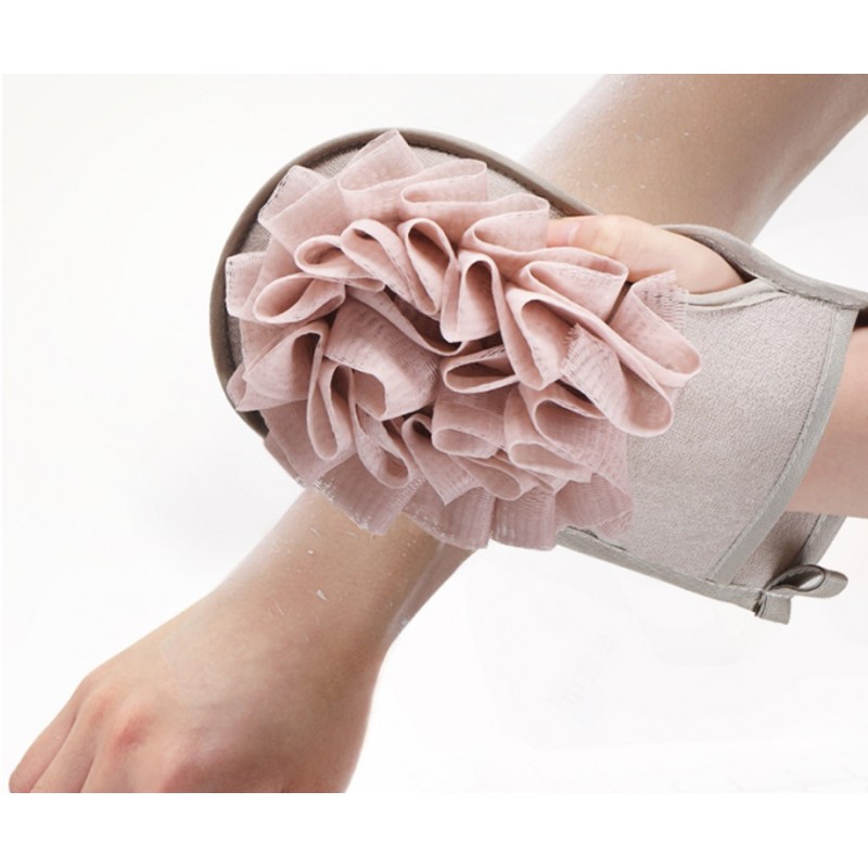 Rękawica do kąpieli ze względu na swój kształt bez problemu dociera do wszystkich miejsc.