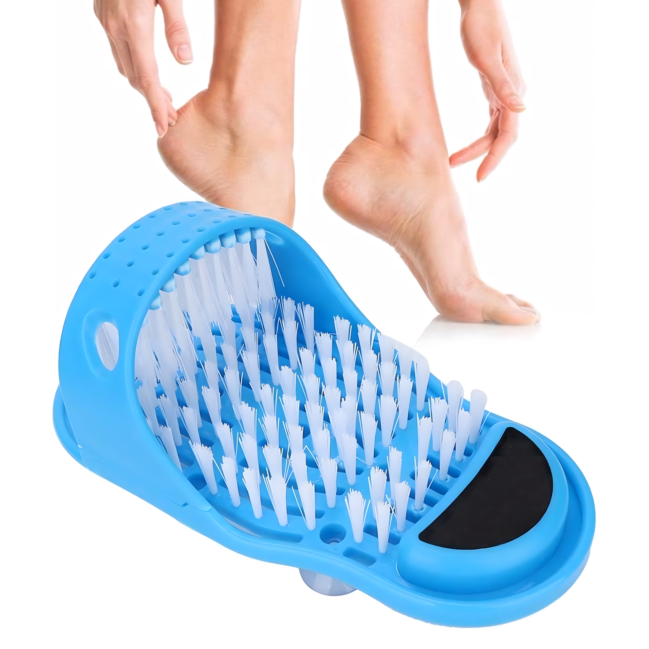 Szczotka myjka i masażer do mycia stóp z pumeksem – idealna pod prysznic dla łatwego i bezpiecznego oczyszczania stóp bez schylania się. Usuwa brud, martwy naskórek, masuje i zapobiega grzybicy. Mocne przyssawki zapewniają stabilność, a wbudowany pumeks pielęgnuje pięty.