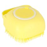 Silikonowa szczotka do mycia zwierząt. Posiada praktyczny dozownik na szampon lub płyn do mycia oraz wygodny uchwyt. Silikonowe wypustki wymasują czworonoga. Można używać na sucho lub na mokro. Prosta w użytkowaniu i czyszczeniu. Wym.: 7,5×7,5×4,5cm.