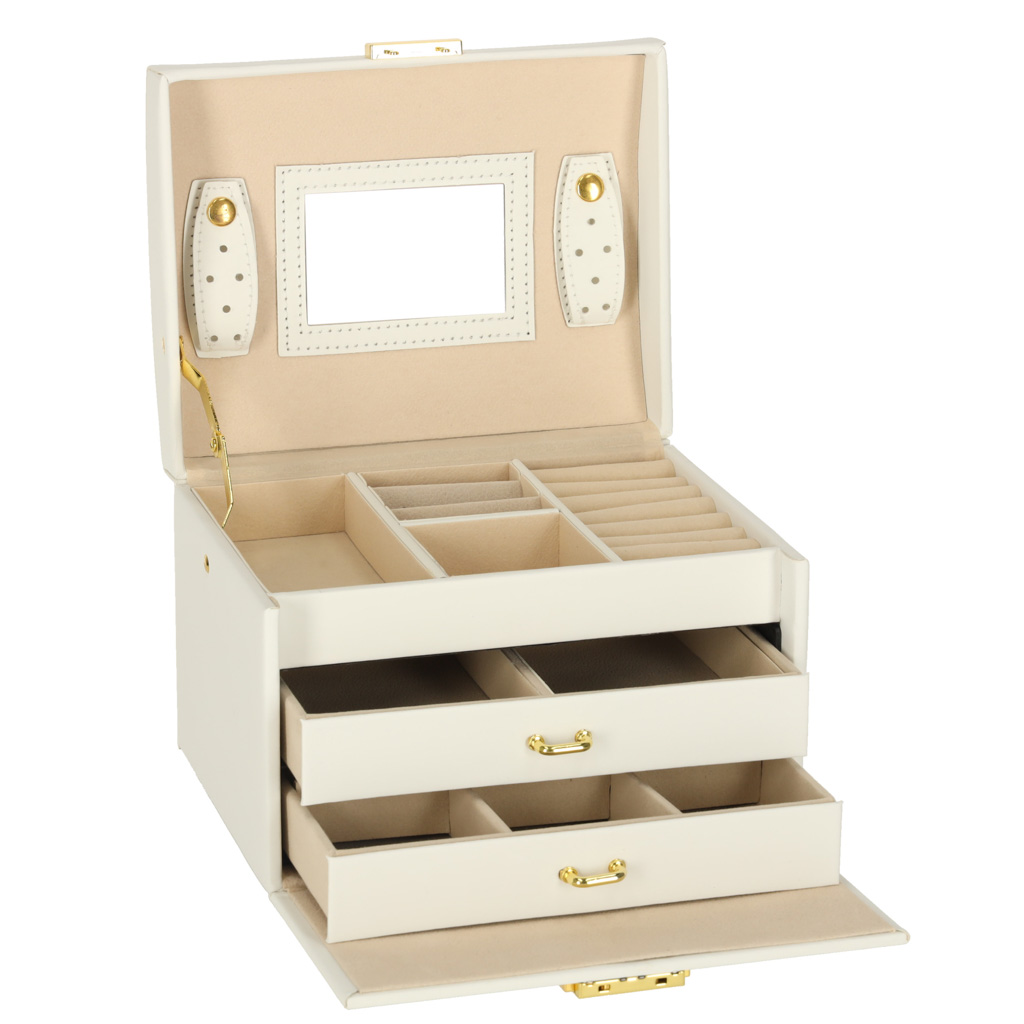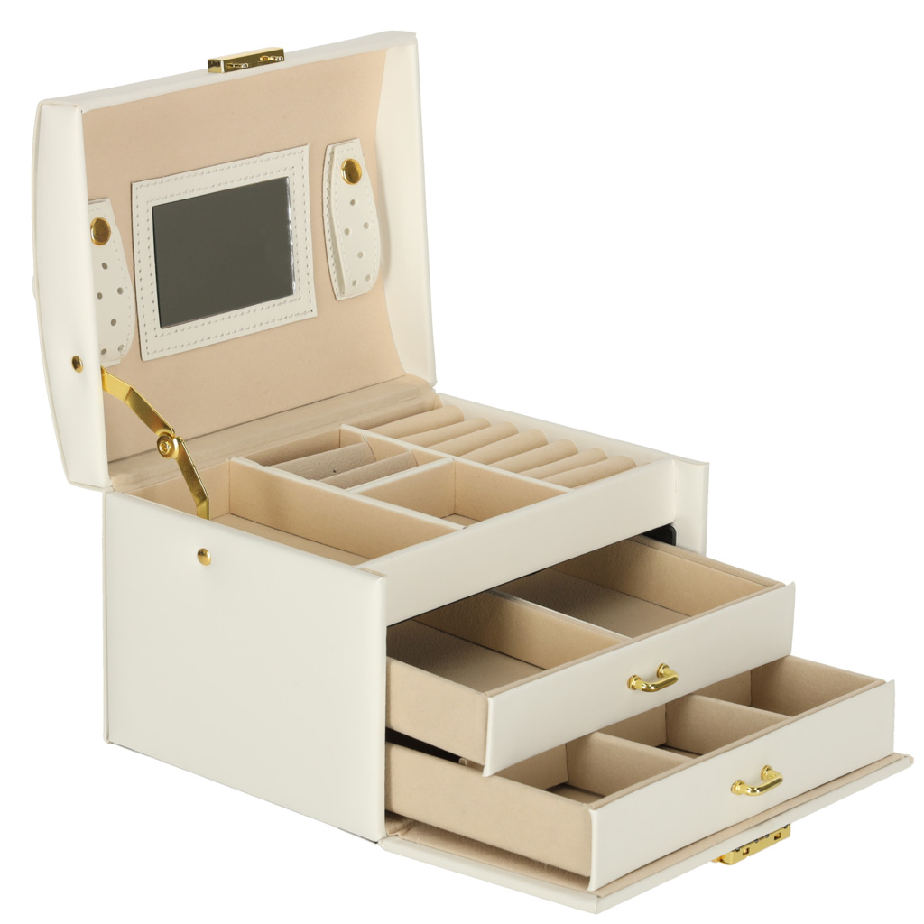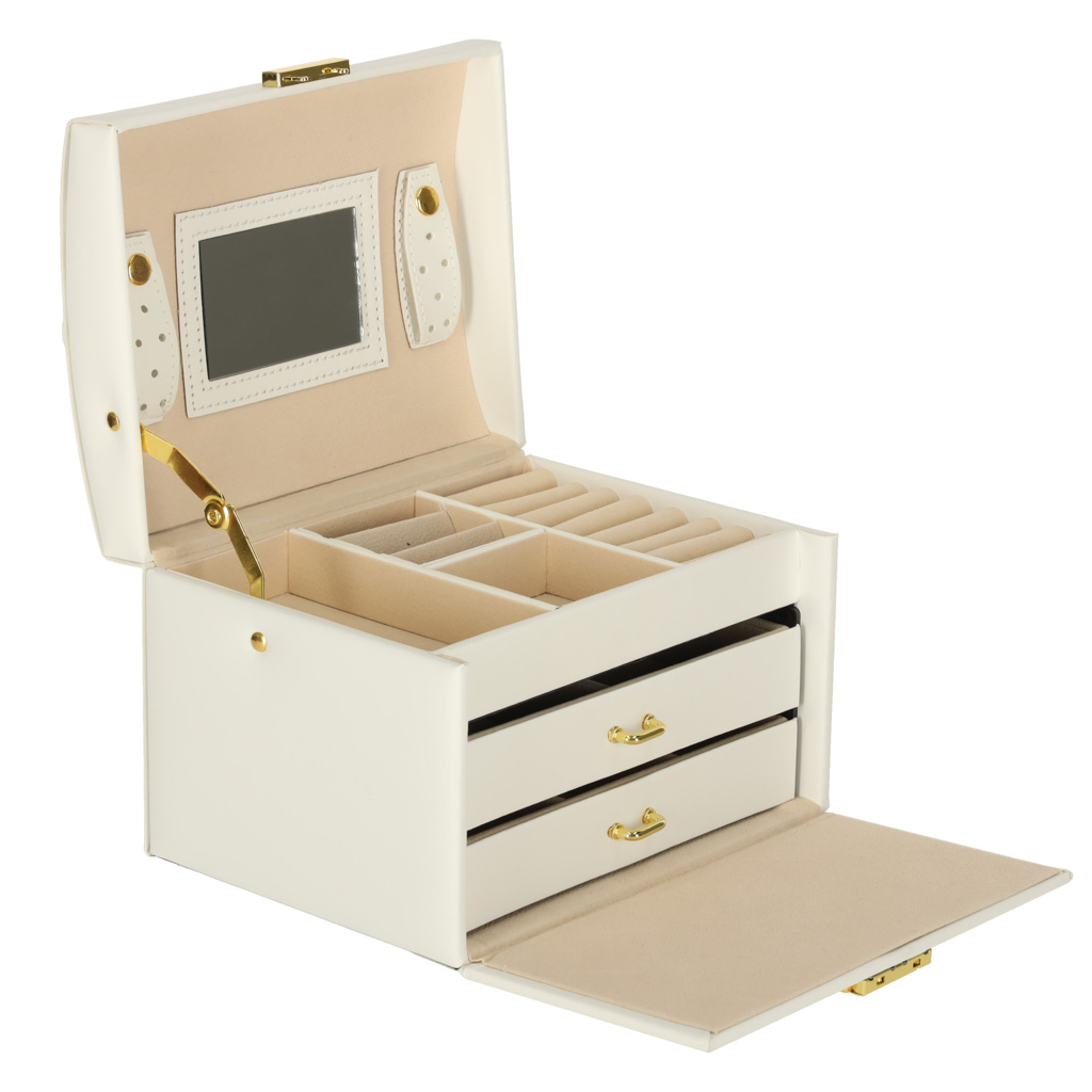 Szkatułka kuferek na biżuterię z szufladami biała