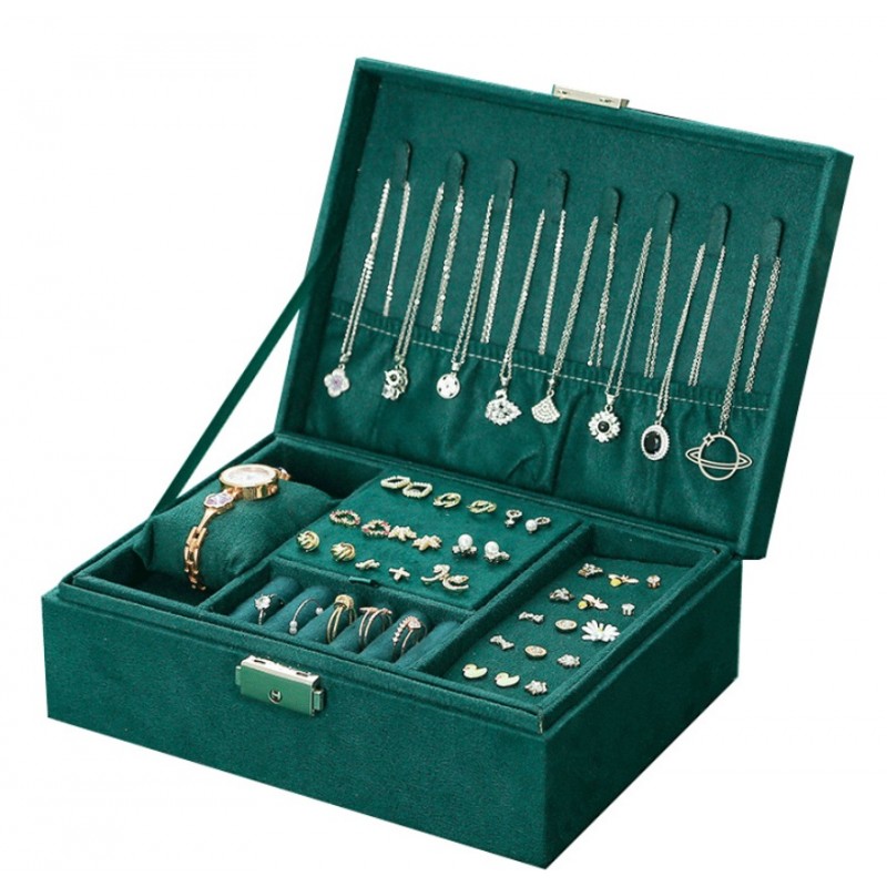 Szkatułka na biżuterię kuferek etui organizer butelkowa zieleń pudełko PD133