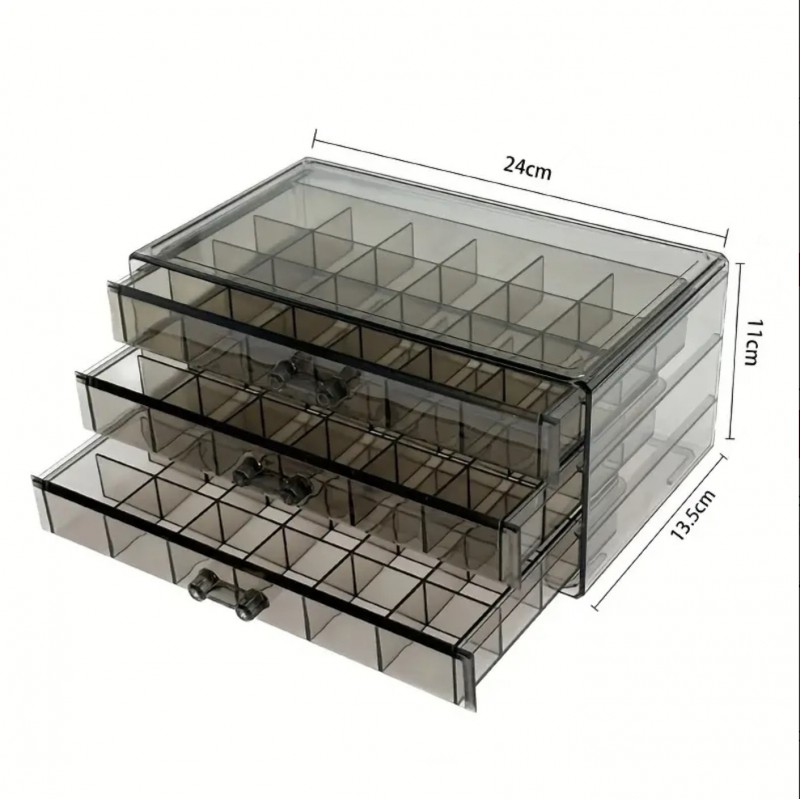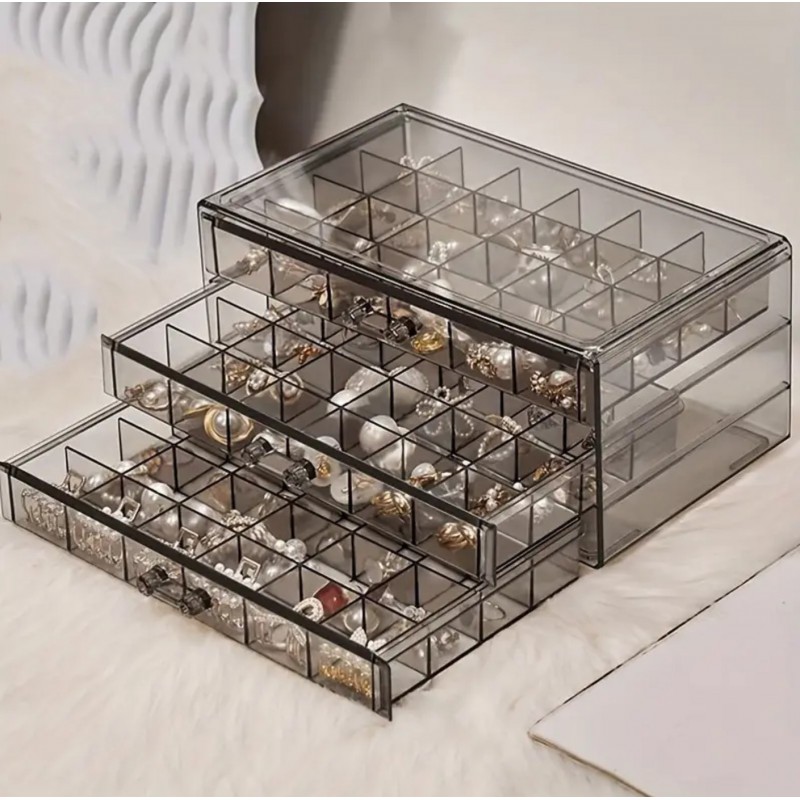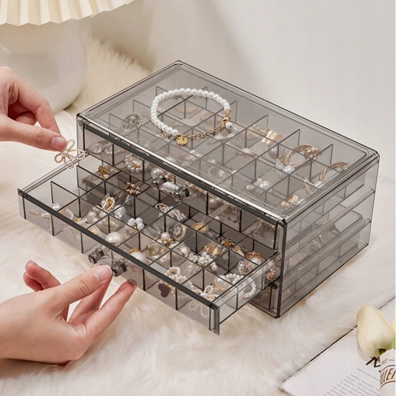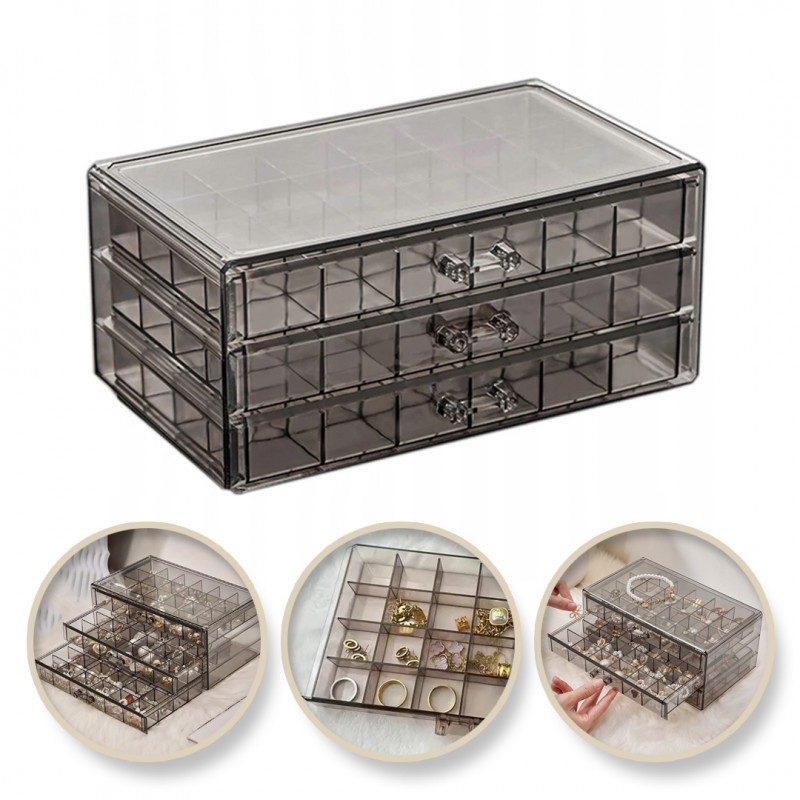 Szkatułka na biżuterię, organizer transparentny – 3 szuflady, 72 przegródki Cechy produktu: – Produkt wysokiej jakości.