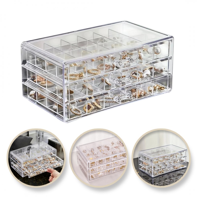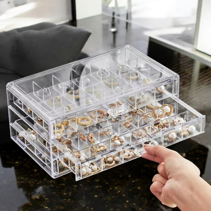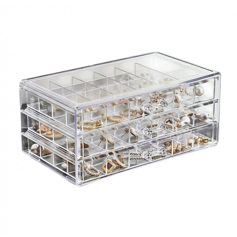 Szkatułka na biżuterię, organizer transparentny – 3 szuflady, 72 przegródki PD159B