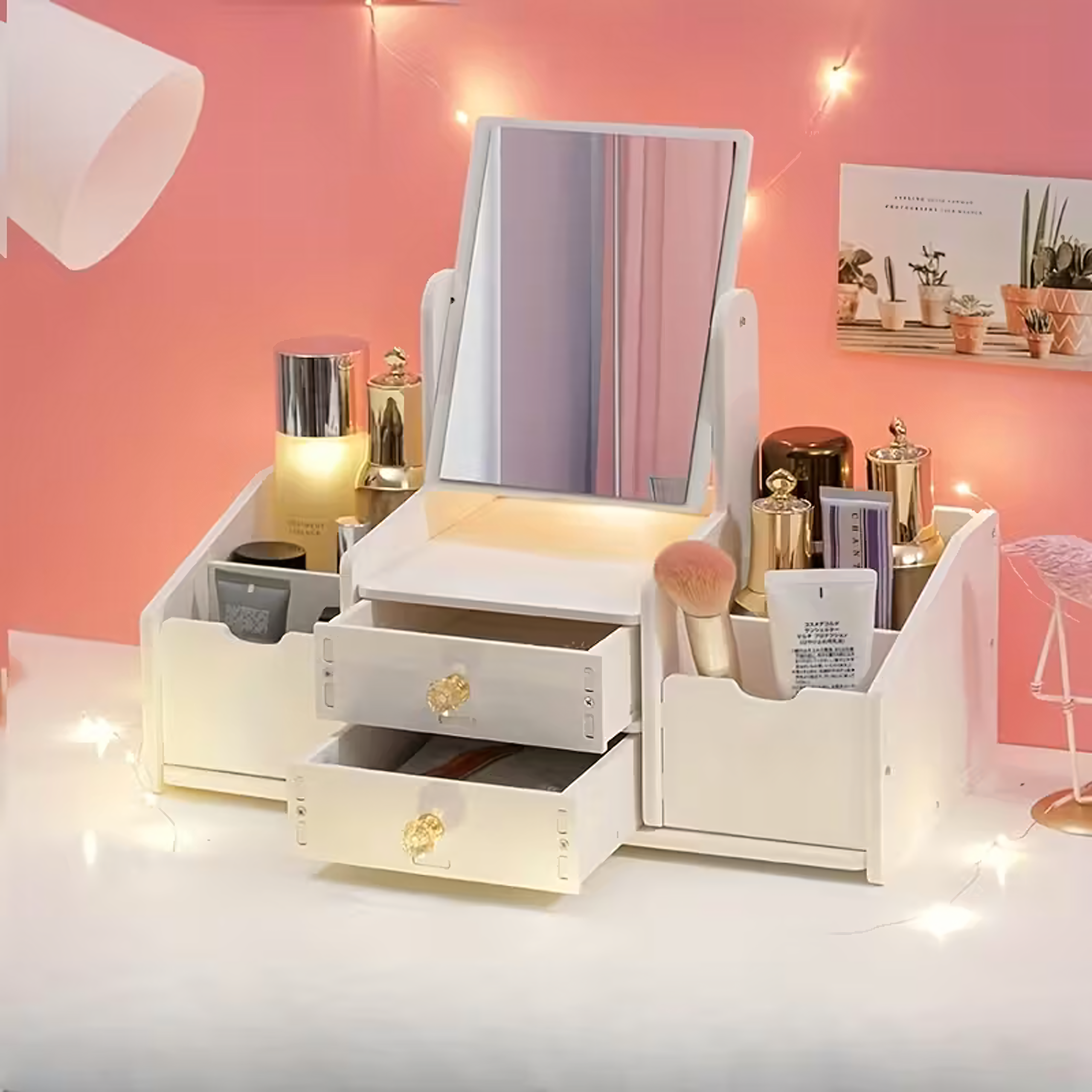 Mała Toaletka z Lusterkiem – Organizer na Kosmetyki i Biżuterię