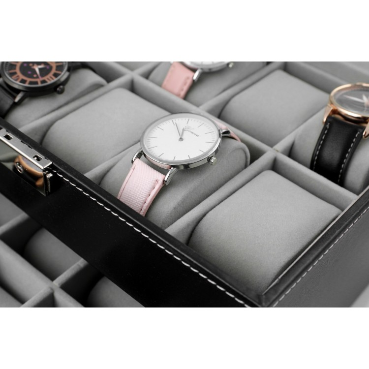 Przepiękna i niezwykle funkcjonalna szkatułka.Jest niezwykle praktyczna i doskonale chroni zegarki przed kurzem i zarysowaniami.Najważniejsze informacje:- wysokiej jakości wykonanie;- niewielkie rozmiary, ale bardzo funkcjonalny – pozwala wygodnie przechować 20 zegarków;- zapewni najwyższą ochronę dla Twoich zegarków;- wykonana z eleganckiego materiału;- środek wypełniony miękkim pluszowym materiałem: