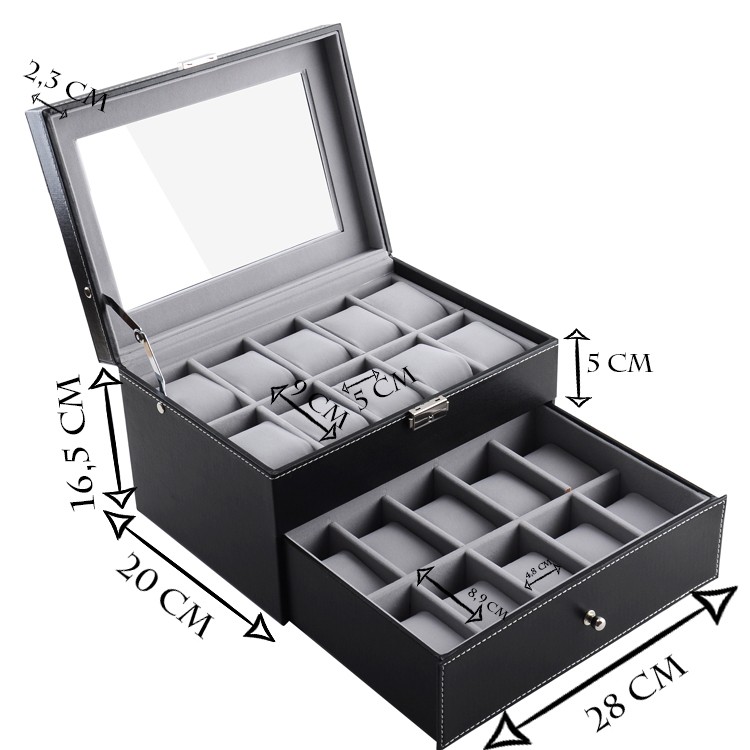 SZKATUŁKA PUDEŁKO NA 20 ZEGARKÓW Z SZUFLADA PD46