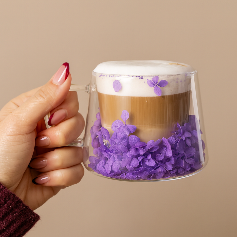 Szklanka termiczna z hortensją w środku fiolet 180 ml 1szt SZK76