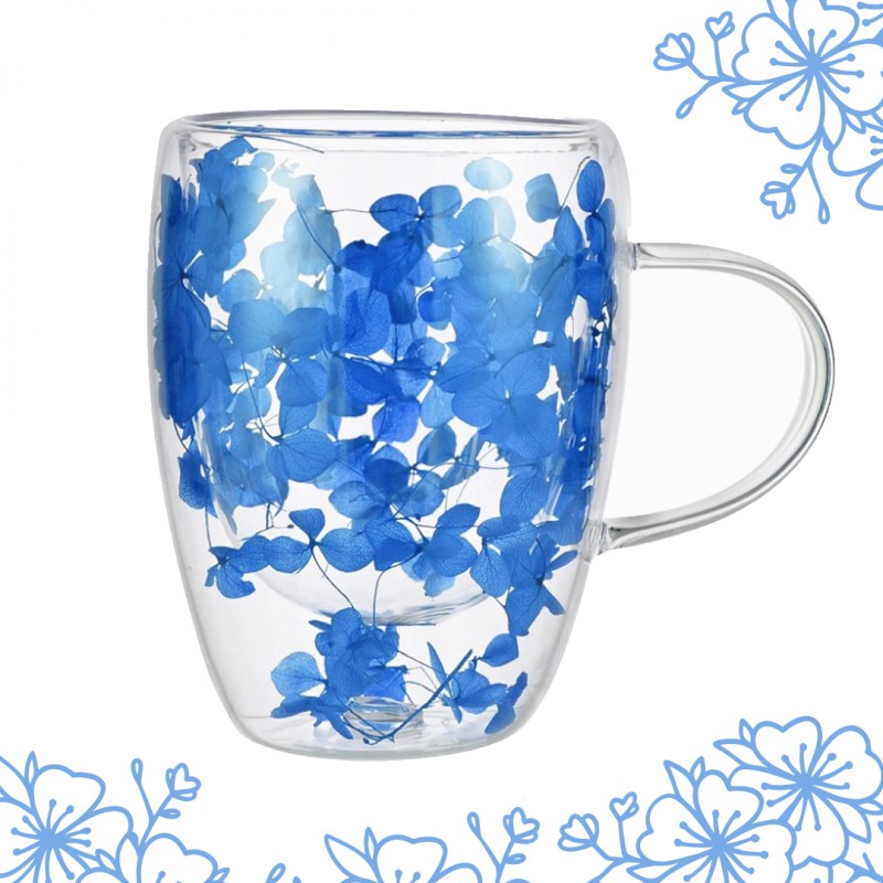 Szklanka termiczna z kwiatami w środku, hortensje 300 ml 1szt SZK104