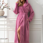 Przedstawiamy elegancki i komfortowy szlafrok damski, który doskonale sprawdzi się również jako homewear. Uszyty z miękkiego, pikowanego materiału, zapewnia ciepło i wygodę na co dzień. Luźny krój oraz praktyczne kieszenie po bokach czynią go wyjątkowo funkcjonalnym, a długi rękaw zakończony mankietem dodaje elegancji. Model z kapturem to idealny wybór na chłodniejsze dni. Szlafrok wiązany w pasie, co umożliwia dopasowanie do sylwetki, pakowany jest w stylowy woreczek. Produkt zaprojektowany i uszyty w Polsce z dbałością o każdy detal.