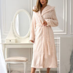 Wygodny i stylowy szlafrok damski, idealny zarówno do relaksu w domu, jak i jako komfortowy homewear. Luźny fason zapewnia pełną swobodę ruchów, a długi rękaw i pikowany materiał dodają przytulności i elegancji. Model wyposażono w praktyczny kaptur, kieszenie oraz wiązanie w pasie, które pozwala dopasować szlafrok do sylwetki. Całość pakowana w praktyczny woreczek foliowy, co ułatwia przechowywanie lub sprawia, że świetnie nadaje się na prezent.