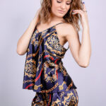 Gładki, zwiewny, satynowy szlafrok w słodkim kolorze Baby Blue, z najnowszej kolekcji od DKaren. Krój typu kimono, wygodny, wiązany w talii, z eleganckim przeszyciem wzdłuż dekoltu. Rękawy typu 3/4.