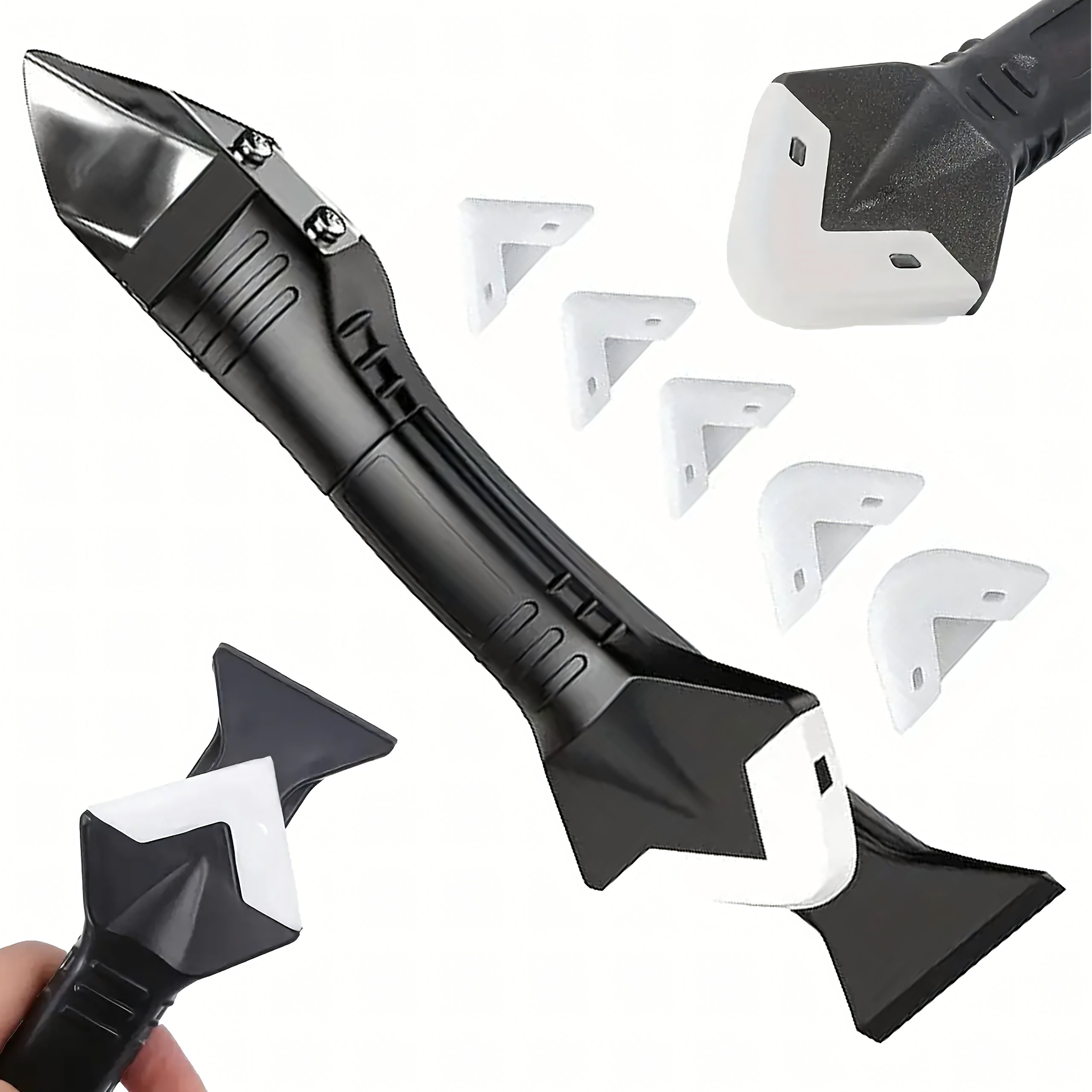 Szpachelka 5w1 do fug i silikonu – praktyczne narzędzie z 5 wymiennymi końcówkami do usuwania starych fug, silikonu, akrylu czy kleju. Ergonomiczny kształt zapewnia wygodę pracy, a bezpieczna konstrukcja umożliwia precyzyjne czyszczenie i nakładanie nowych spoin.