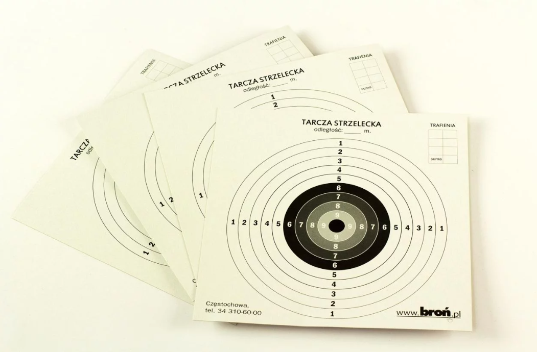 | że tarcze są prawidłowo ustawione i umieszczone przed rozpoczęciem strzelania. | Przechowywać z dala od dzieci. |