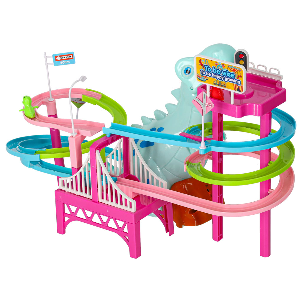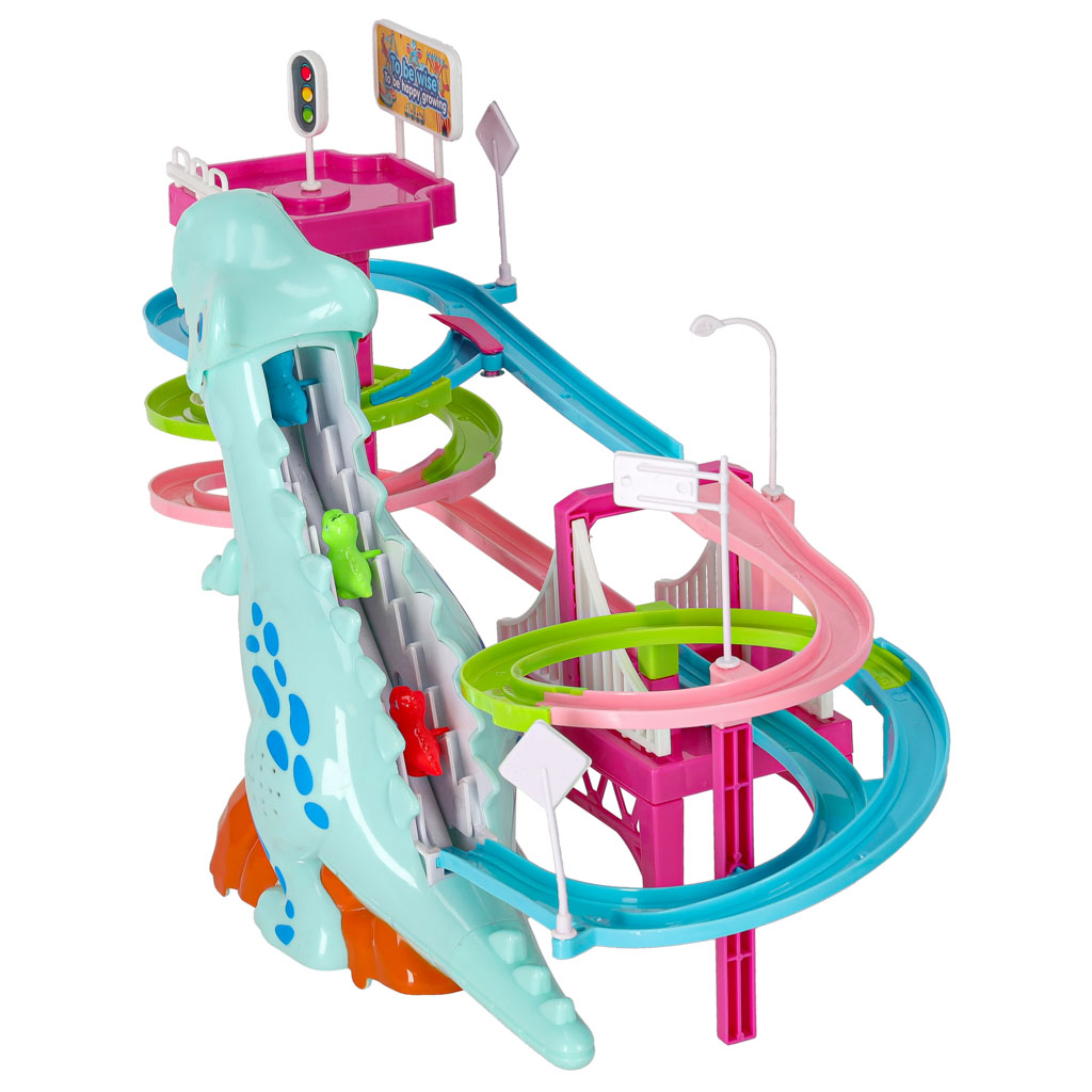 Tor wyścigowy dinozaur zjeżdżalnia ruchome schody LED dźwięk