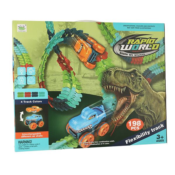 Tor wyścigowy elastyczny samochodowy auta zjeżdżalnie 198el. 132cm