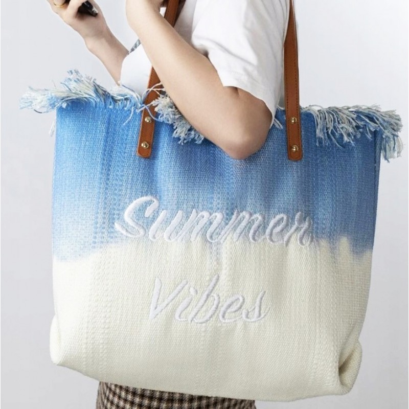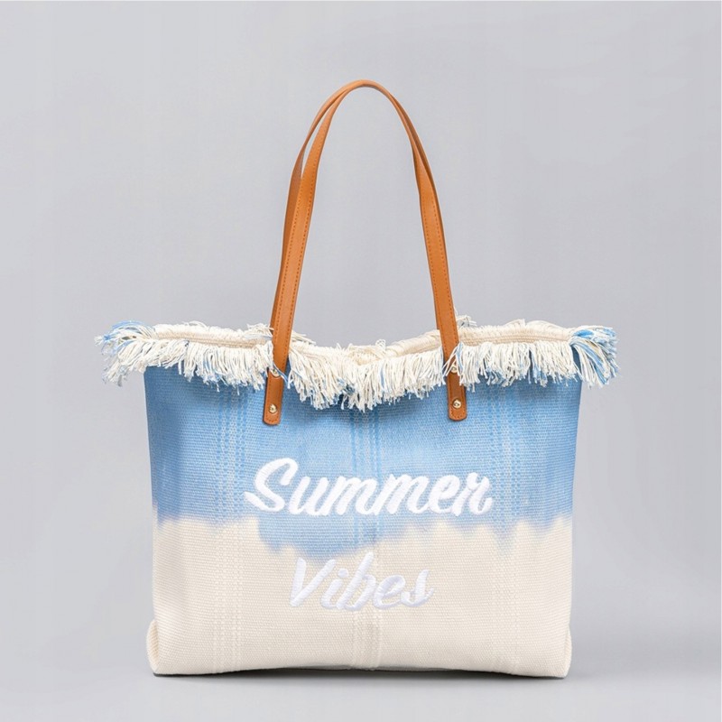 TORBA PLAŻOWA, Wakacyjna BOHO Z frędzlami niebieska ombre, na zakupy TP14N