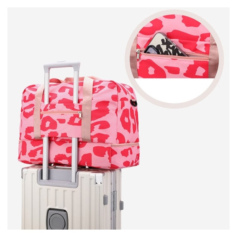 Torba podróżna dwukomorowa różowa PANTERKA 51x25x39cm T264
