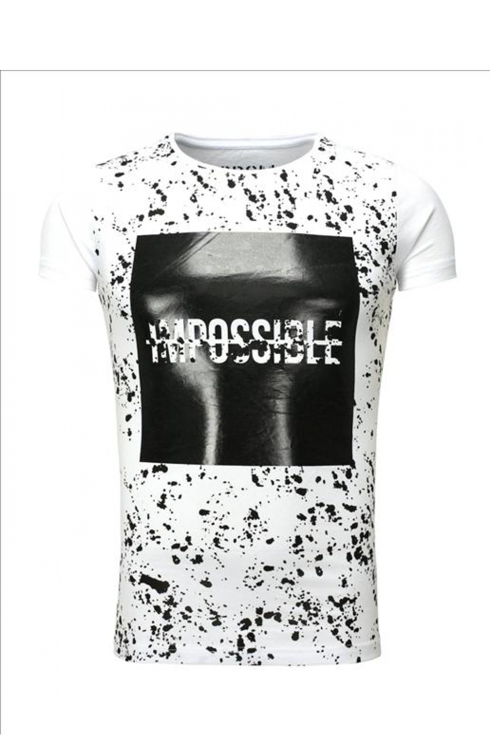 Tshirt męski z krótkim rękawkiem. Przód z wzorem i nadrukiem.
